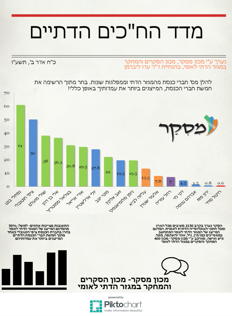 מכון הסקרים "מסקר" ביצע סקר כלל-ארצי זה בקרב מדגם מייצג של המגזר הדתי לאומי. הסקר כולל שאלה סגורה עם בחירה מרובה, הכוללת 17 שמות חברי כנסת דתיים ודתיות (לא כולל את המגזר החרדי), על מנת לענות על מטרת הסקר.