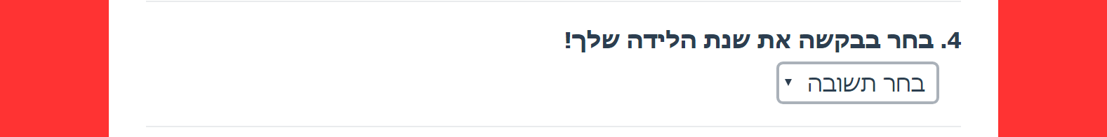 האפשרות הנפוצה ביותר. סוג שאלה זו מאפשר לסמן תשובה אחת בלבד. כפי שמוצג בתמונה, ניתן גם להוסיף תשובת 'אחר', ולקבוע האם ייפתח חלון להשלמת התשובה, והאם תהיה החובה לכתוב בתוכו או לא.
